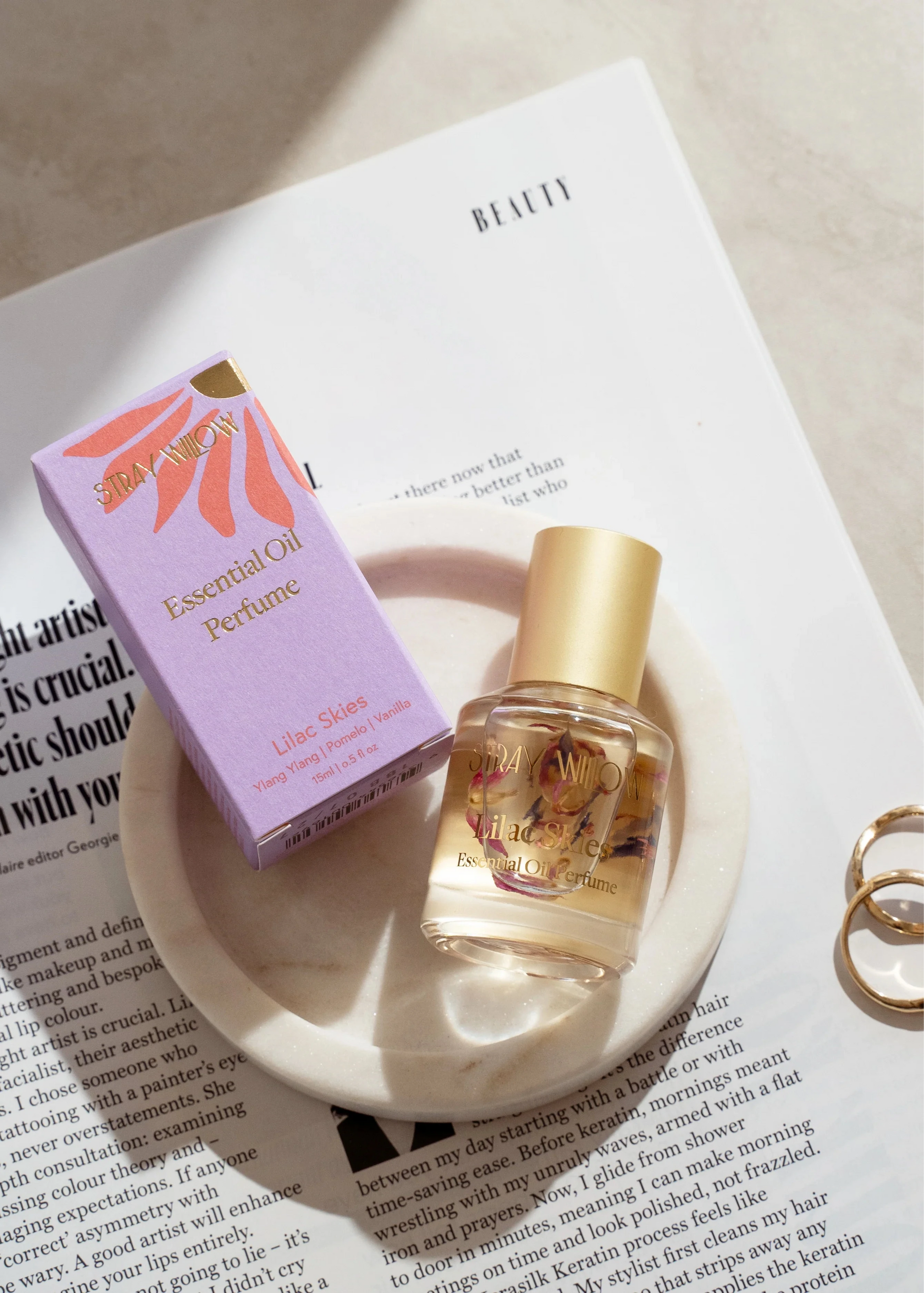 Encased in recyclable glass, Lilac Skies presents a sophisticated, mindful experience that gently elevates and calms your day.
