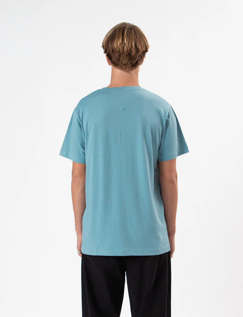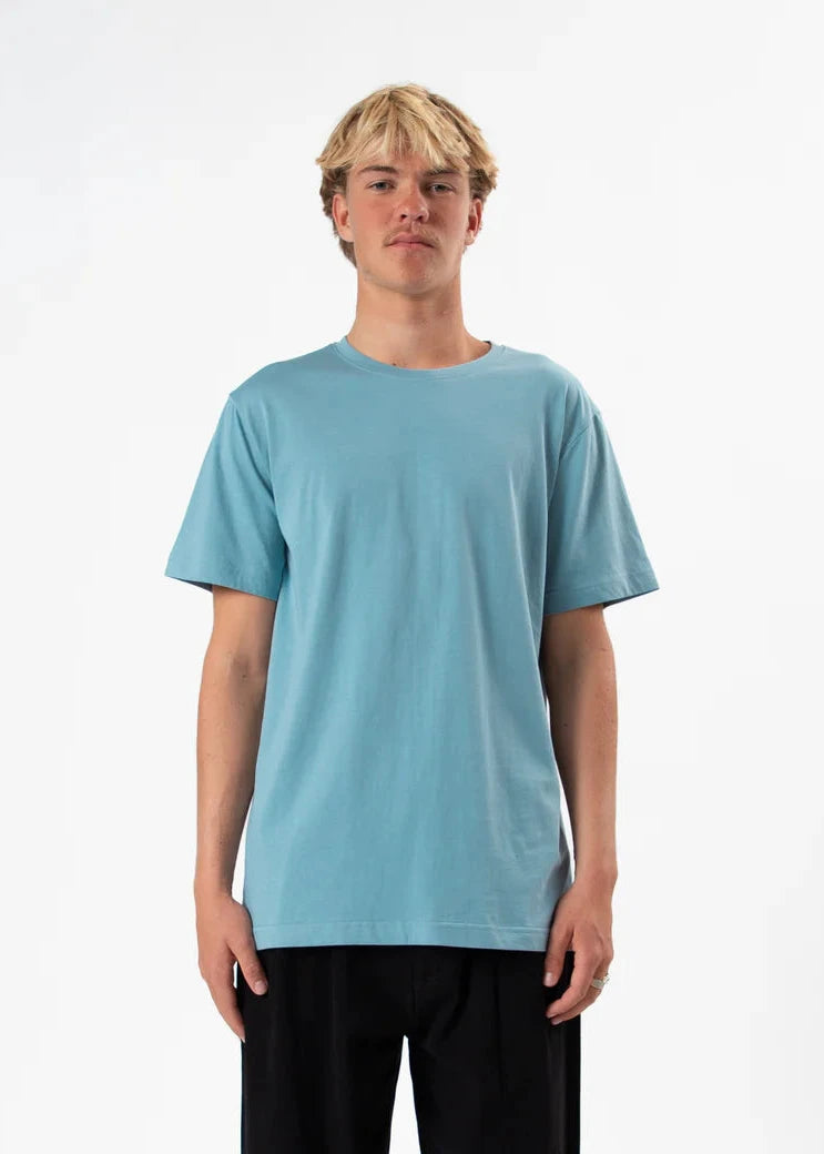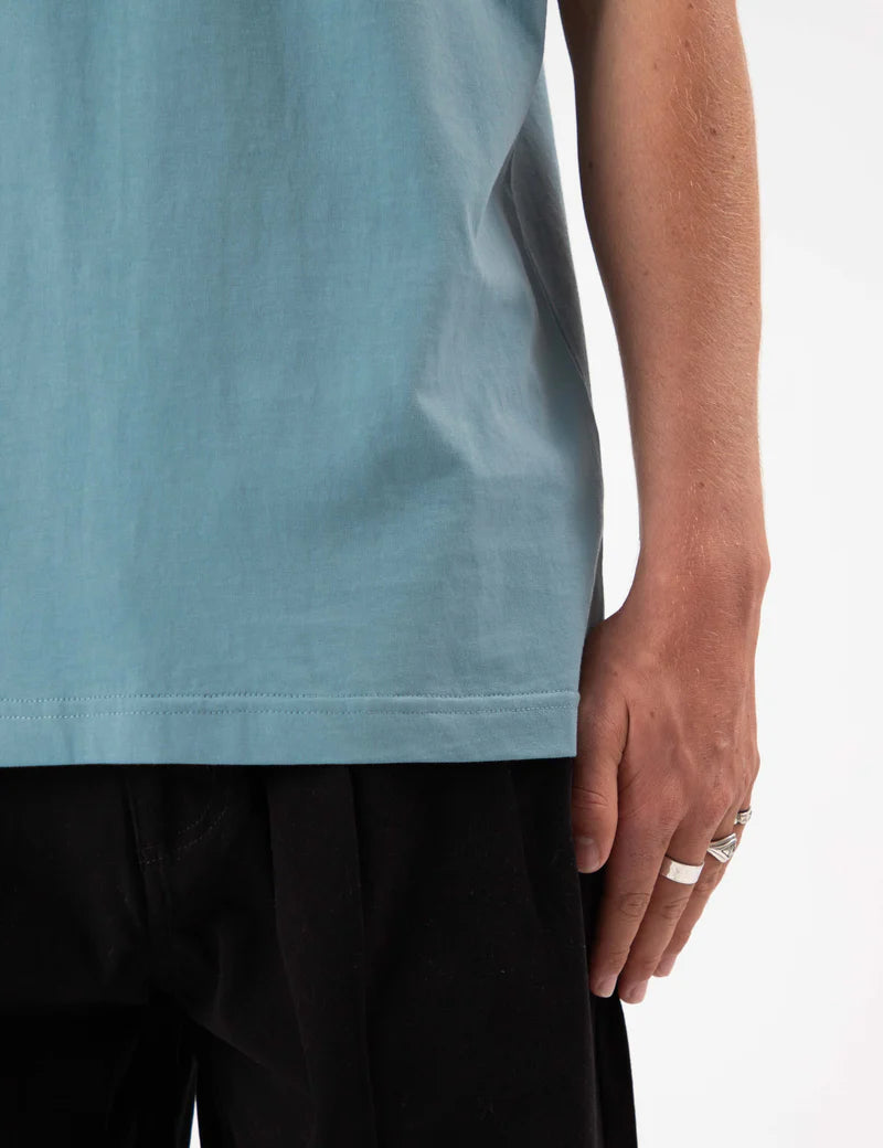 The Reginald Tee in Blue Smoke is a sophisticated wardrobe staple crafted from premium lightweight fabric.